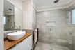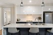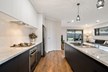 The kitchen is in the middle of the house and serves as the heart of this entertainer's home. The benchtop is a gorgeous marble-look with waterfall edges, creating a sense of elegance. Features in the kitchen include an integrated dishwasher, new stainless-steel cooktop and oven, double sink with a great flick mixer and a generous sized walk-in pantry. The kitchen forms part of the spacious, open-plan living area, with dining zone and lounge flowing from it. Light streams in through wide windows, and modern pendants hang from the ceiling over the island bench.