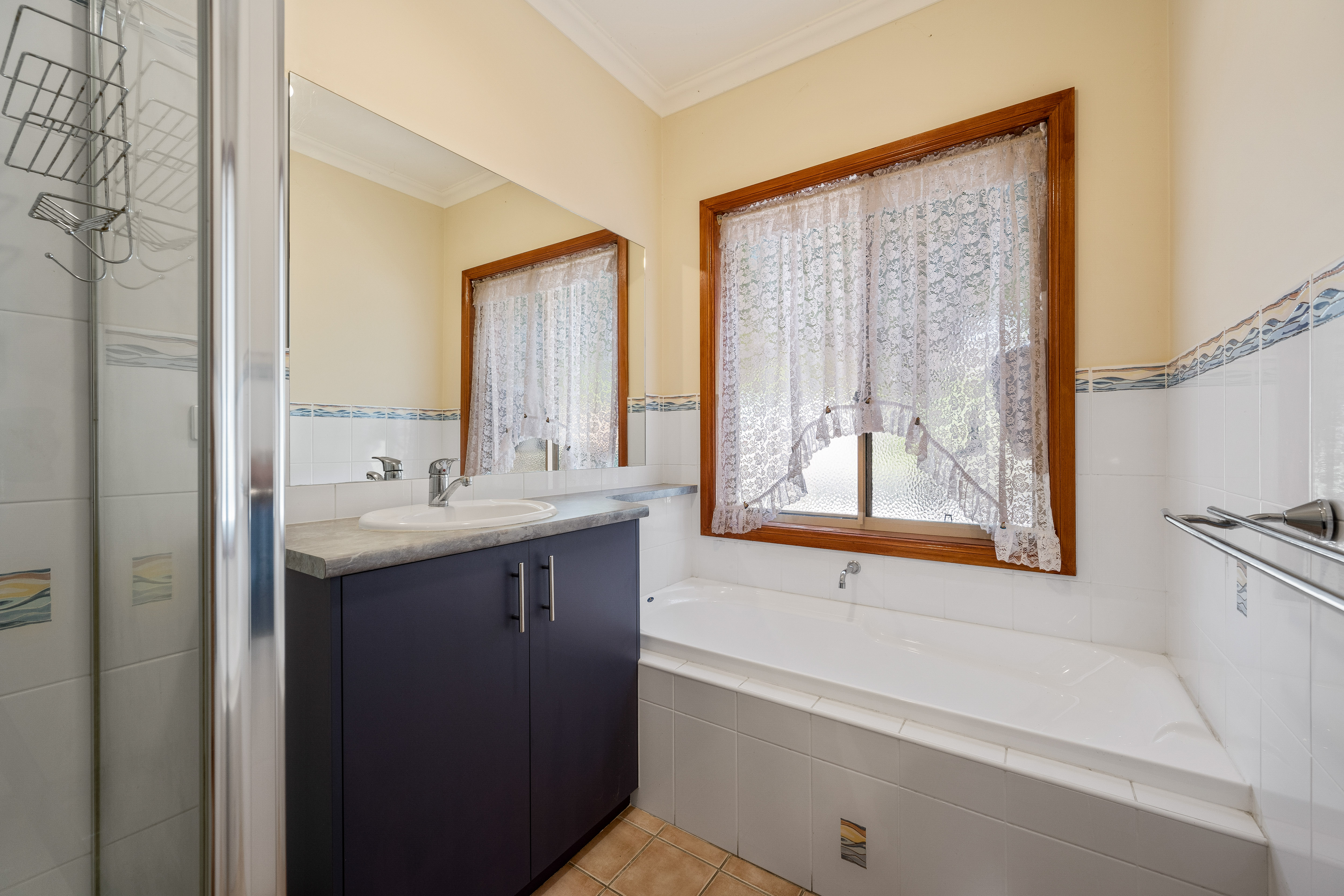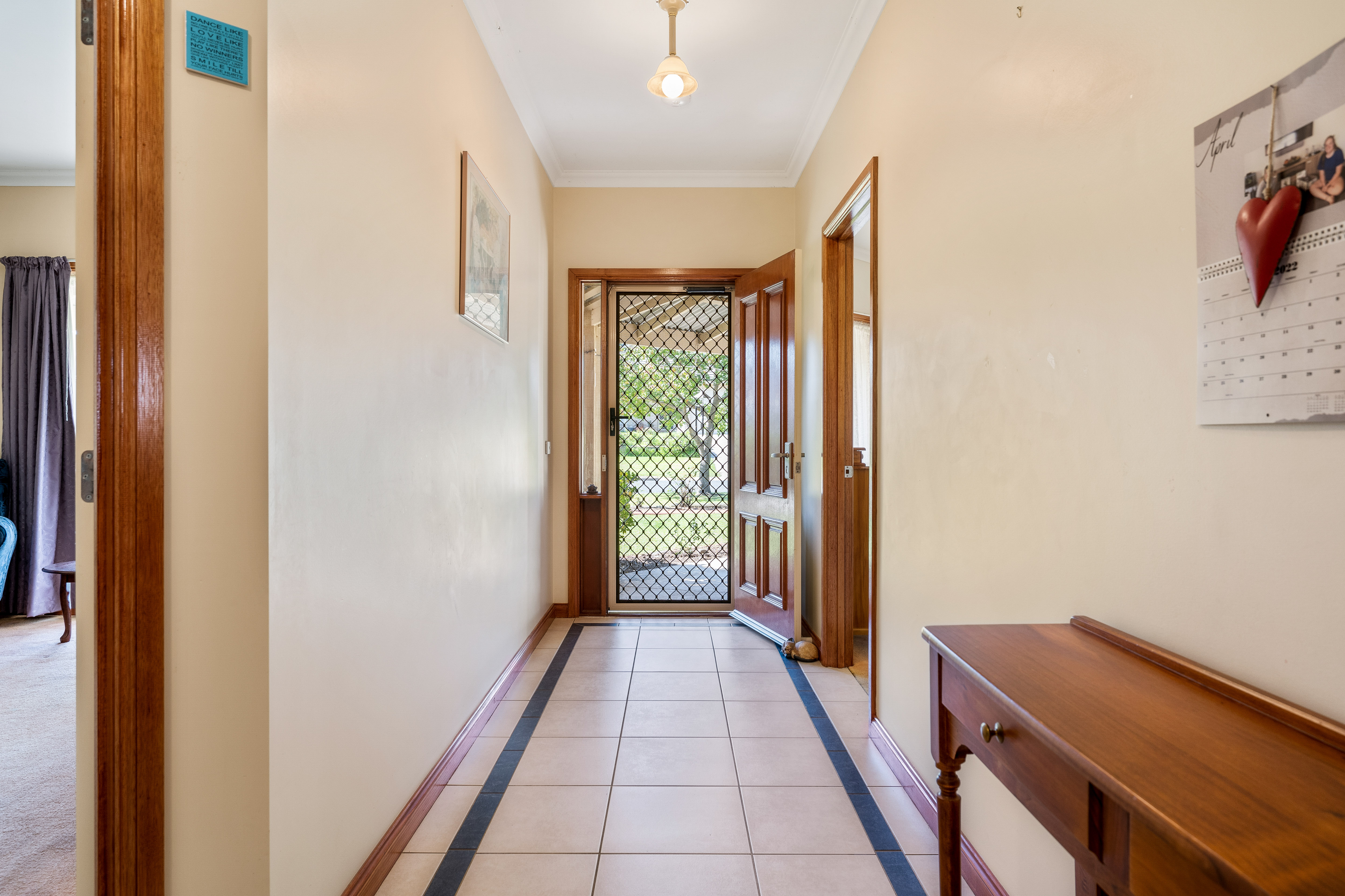 The entrance has that country appeal with a timber door and allowing light into the centre of the house. The flooring is stylish tiles with detailing. The master bedroom has style and a warm morning eastern aspect. The grand ensuite has lots of storage and light with the large mirror. The walk in wardrobe will easily accommodate all of your clothes.