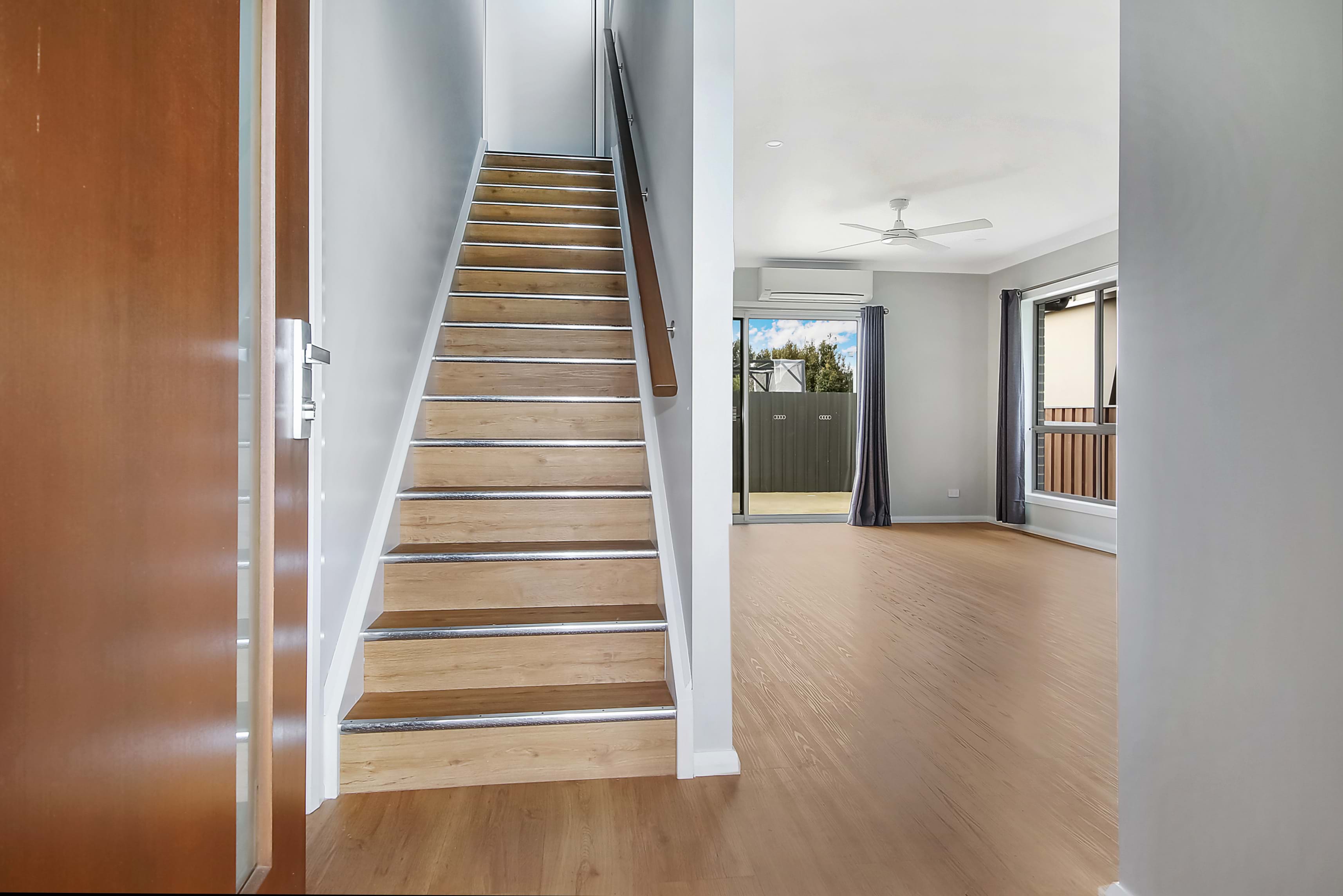 This home prioritizes comfort with ceiling fans and split systems in the lounge and both bedrooms, ensuring a pleasant climate year-round. The single lock-up garage, which includes a laundry area, and a low-maintenance courtyard perfect for small gatherings, add to the home's appeal. Safety is also considered, with handrails added to the stairs.