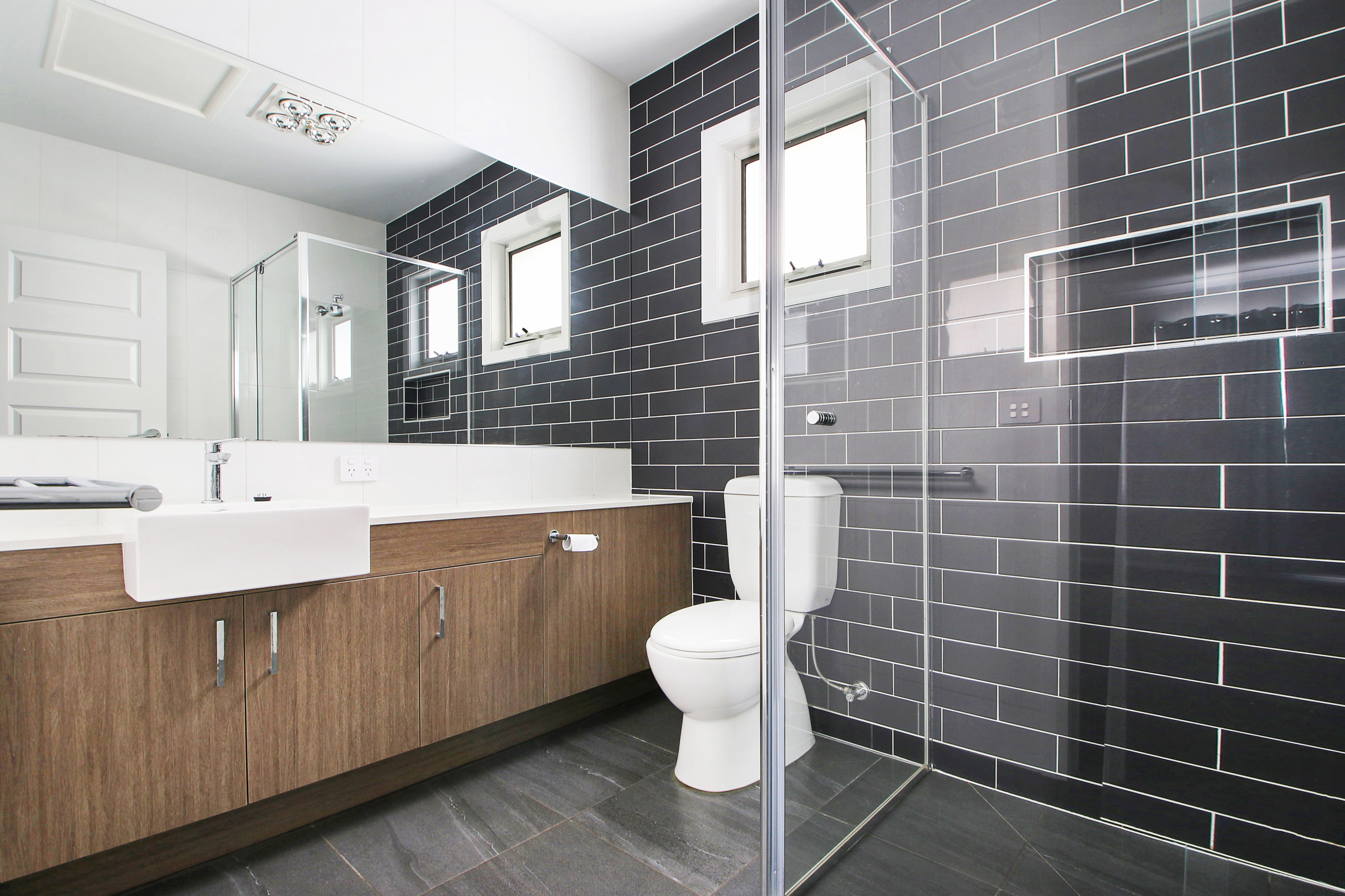 Both extra-large bedrooms showcase comfort and style. One offers a walk-in robe, while the other includes a mirrored built-in robe, ensuring ample storage. The private ensuites feature modern amenities, including bathroom vanity storage and inbuilt shelves in the showers for added convenience.
