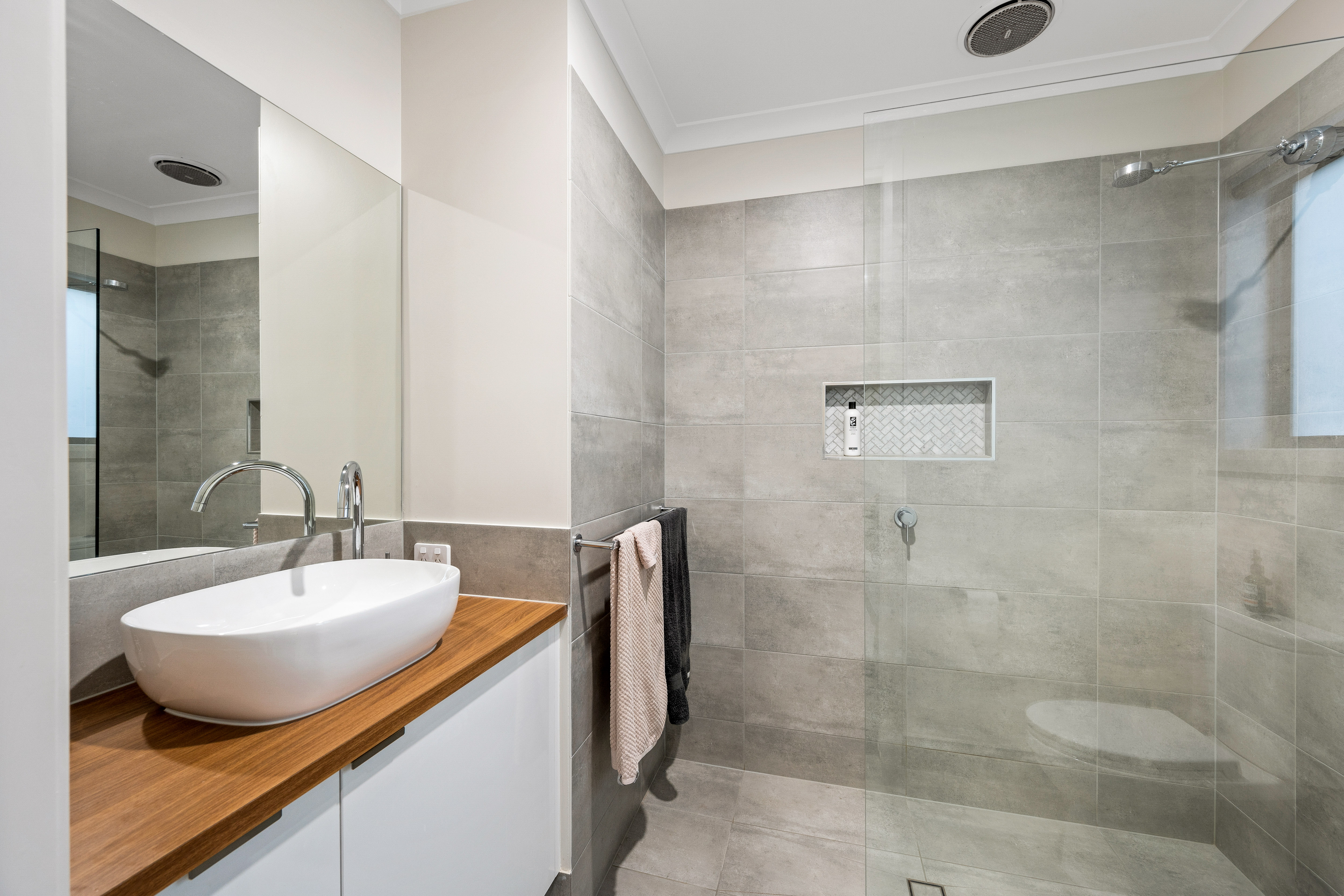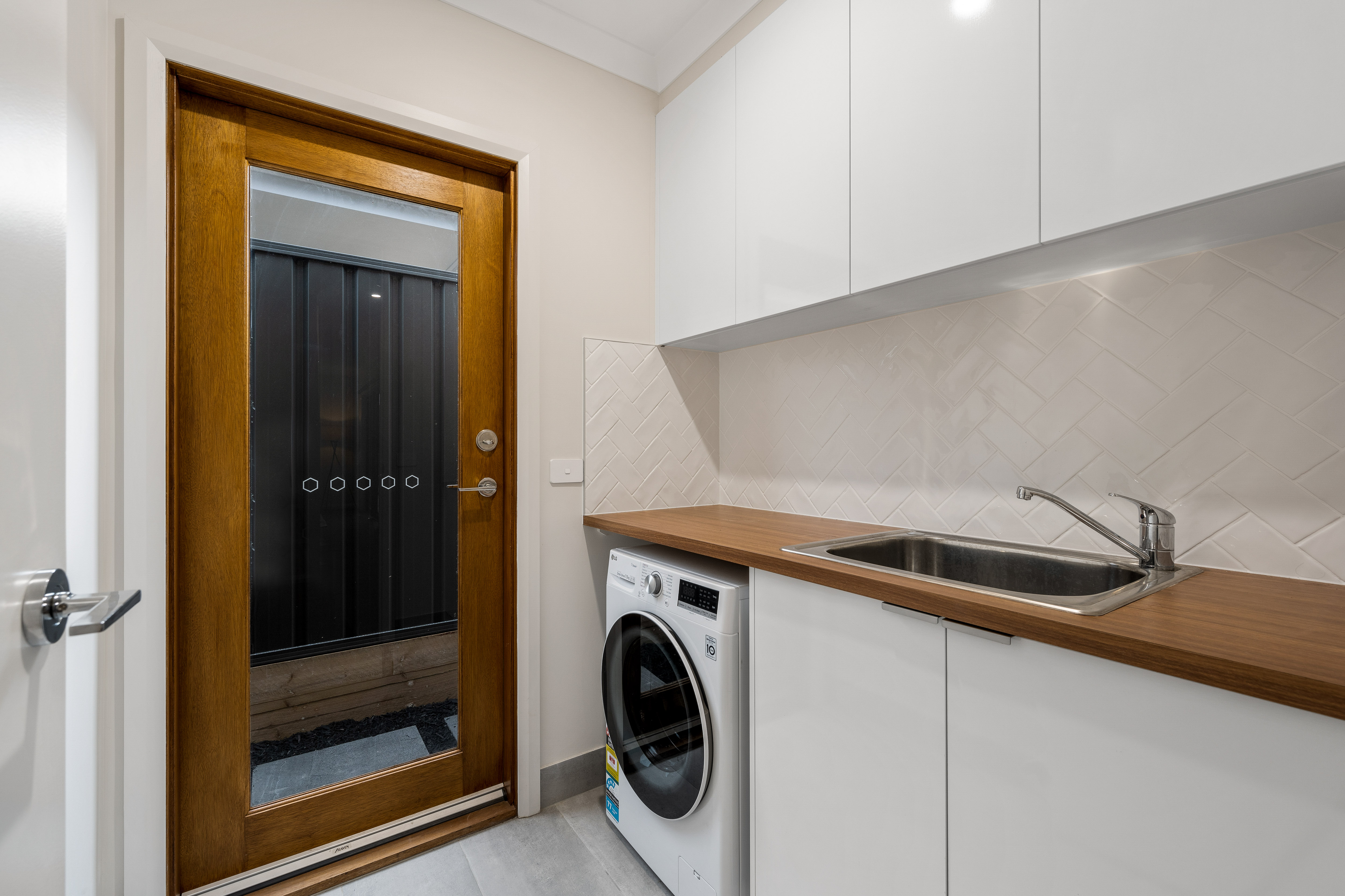The rear of the house entails the 3 bedrooms, all well-sized and include full height, built in wardrobes with mirror doors. The central bathroom is functional, stylish and has room for all the residents and guests. A separate toilet is a big plus, especially for the busy parties, or the morning rush! The laundry features a nice sized benchtop and heaps of storage. Speaking of storage, there’s both a broom cupboard and a linen cupboard throughout, something many new homes miss out on.