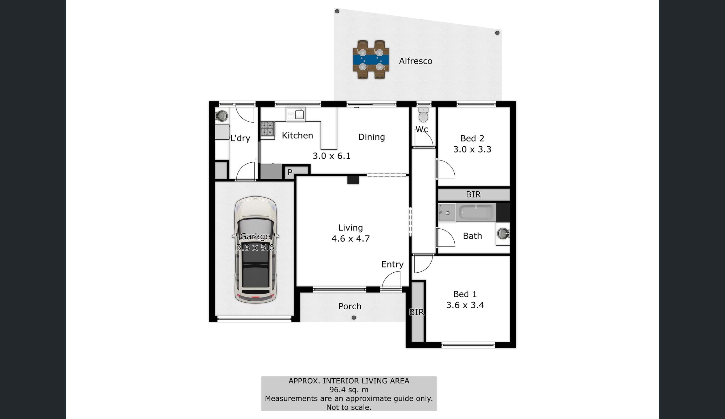 The bedrooms are great size, the master bigger and both with built in robes. The bathroom is generous and has a bath, shower and vanity. Separate toilet.