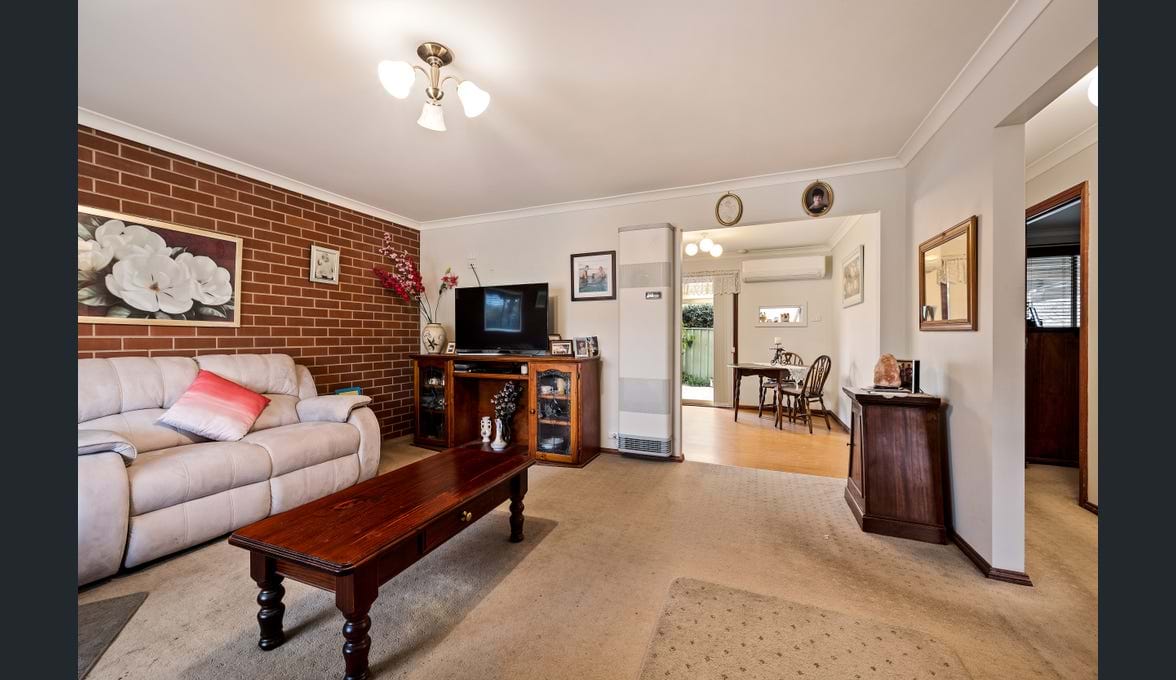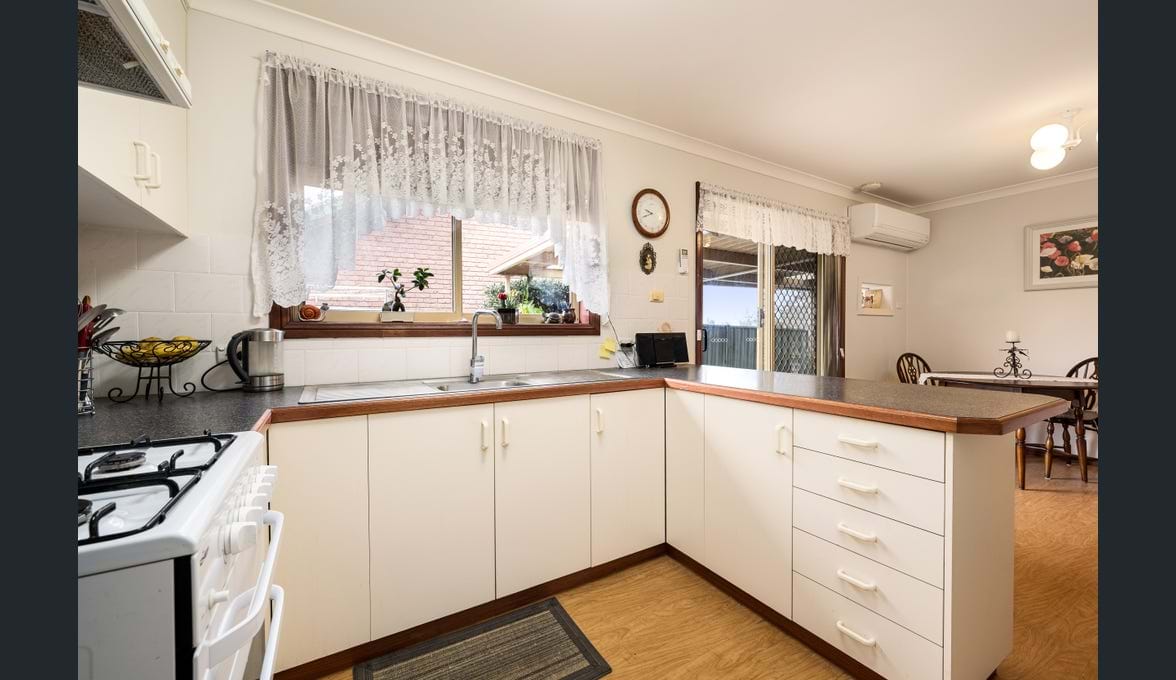 This unit stands alone and has a wide front yard. You have a cute little simple garden leading to the front door. Open up to the lounge room with a gas heater creating warmth and comfort. The dining room opens over the kitchen and leads to the backyard.