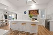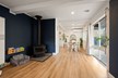 At the heart of the home, a fully equipped Steve Merridith kitchen boasts high-end appliances, including a 900mm self-cleaning oven, stone benchtops, soft-close cabinetry and a skylight making it a joy for culinary enthusiasts. You are welcomed by a large island bench made for central entertaining, a number of clever designed pantry's and so much extra storage. The dining room is bright and leads to a cozy lounge area with a wood fire that is ducted to heat the rest of the house. There is oversize fan to regulate the air all year round.