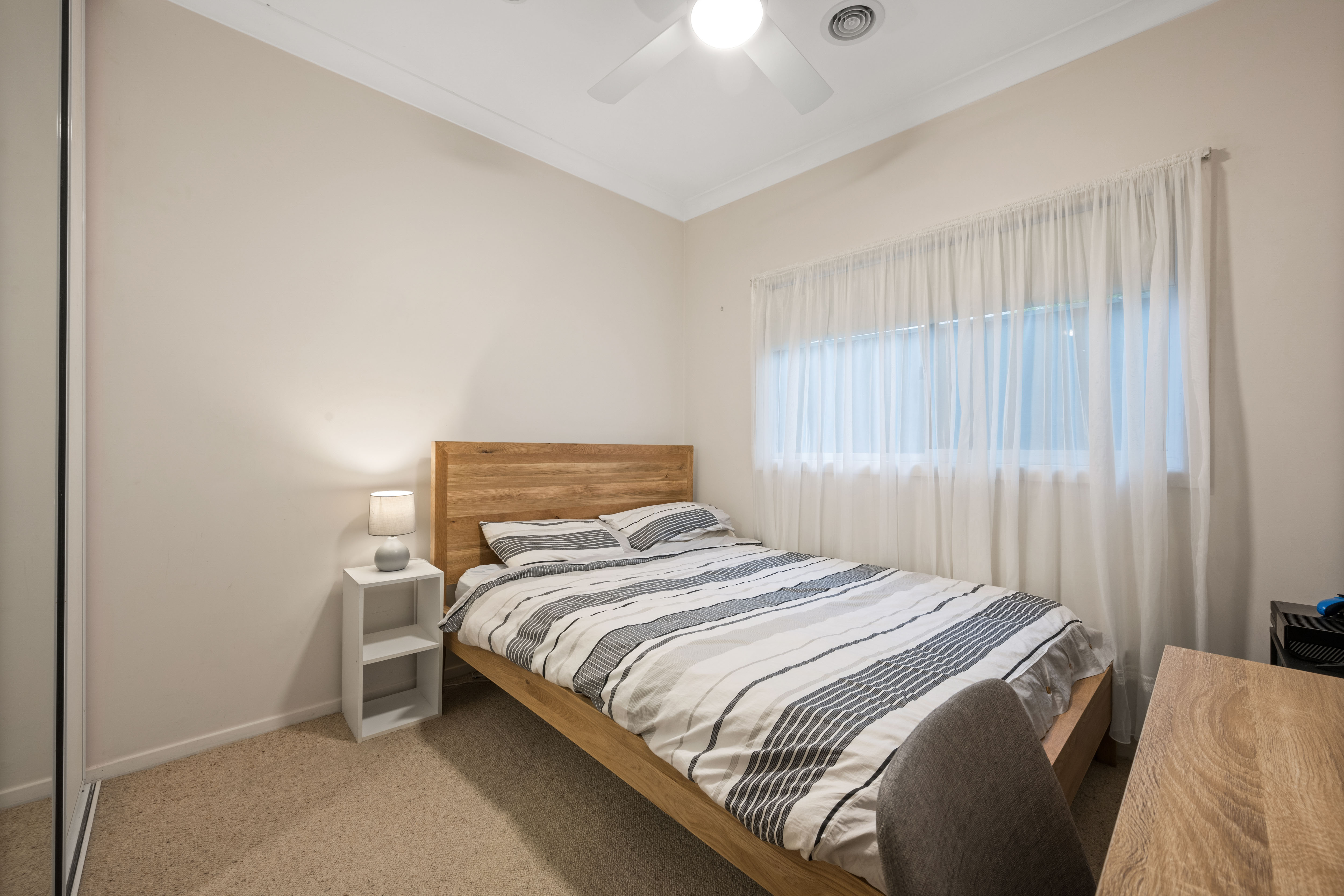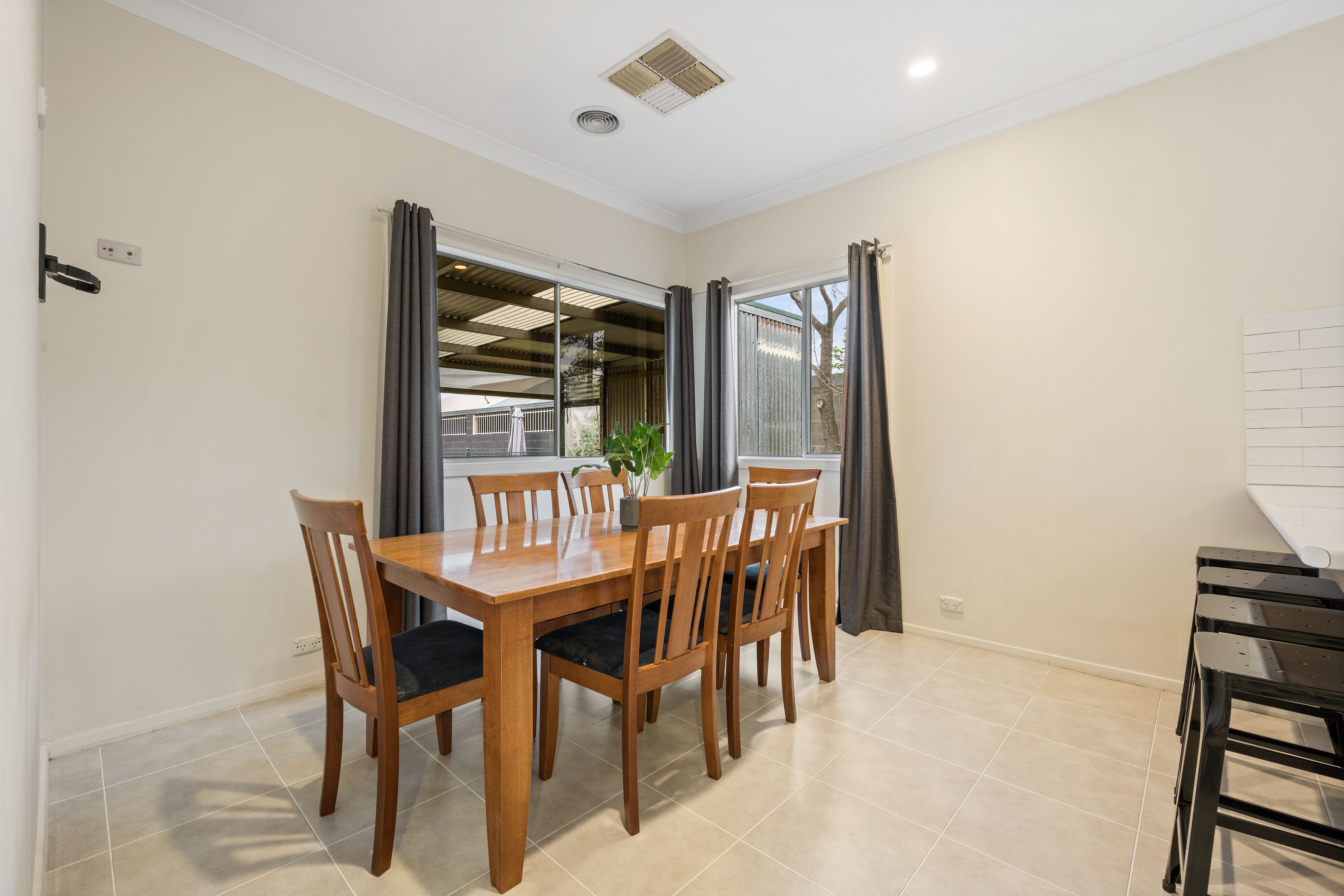 Step outside to a covered outdoor area, ideal for alfresco dining and relaxation, while the low-maintenance backyard offers a perfect space for children to play or for gardening enthusiasts to add their touch.