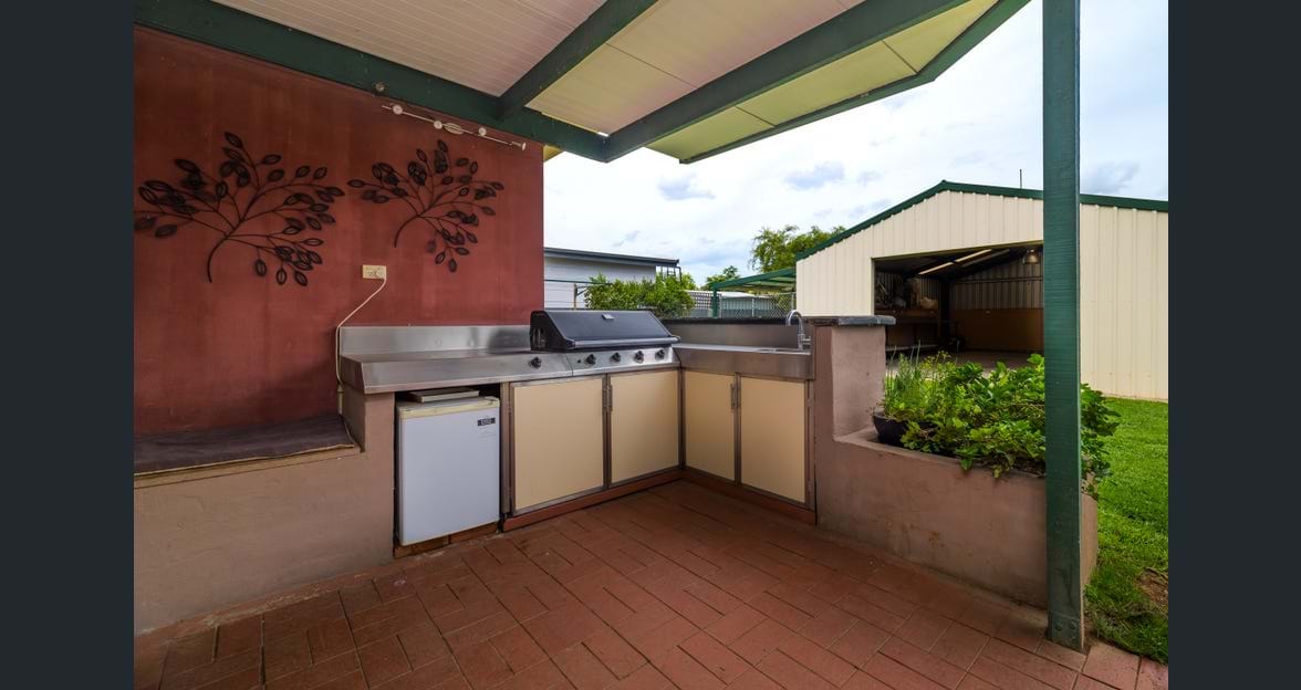 Outside provides an undercover entertaining area with built in BBQ, a tranquil garden setting and a double lockup powered garage complete with shelving and benches for the tradesman.