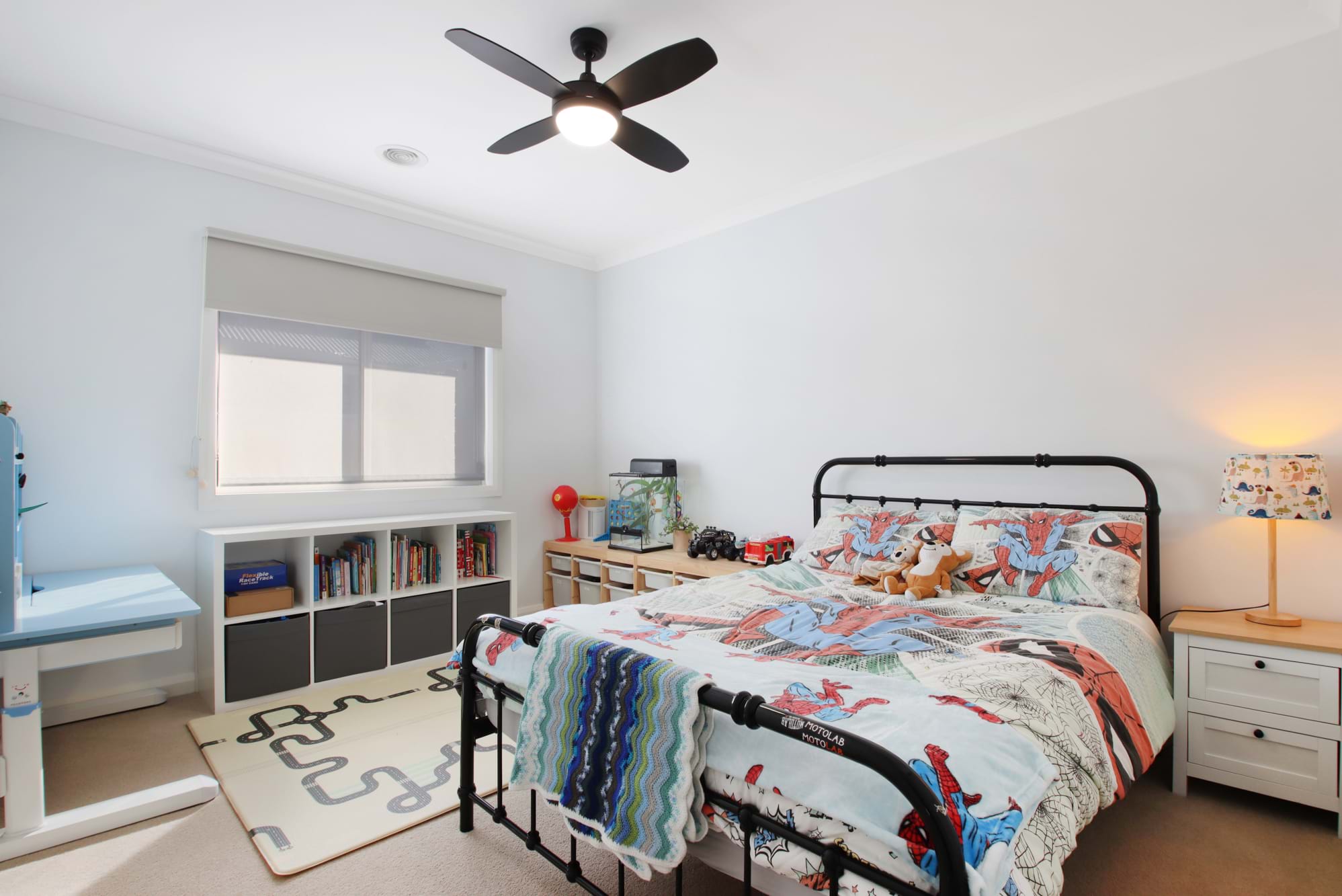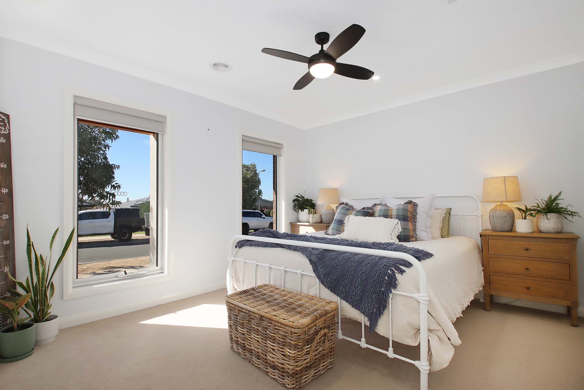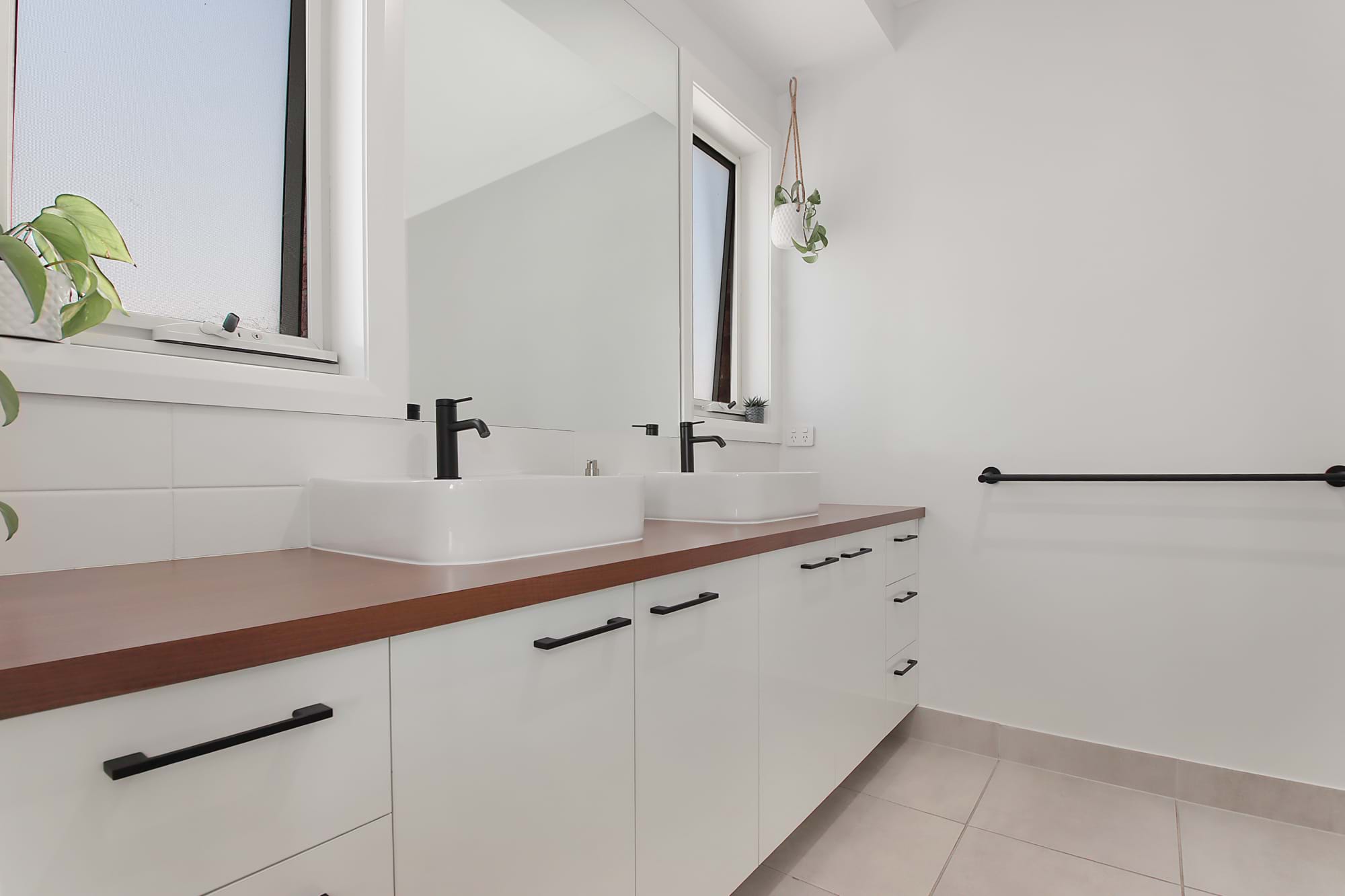 This family home includes four large bedrooms, all with built-in robes and ceiling fans. The master suite is privately positioned and boasts a generous walk-in robe and a stylish ensuite with double vanity. The main bathroom is equally impressive, complete with an upgraded bath and striking matte black shower screen.