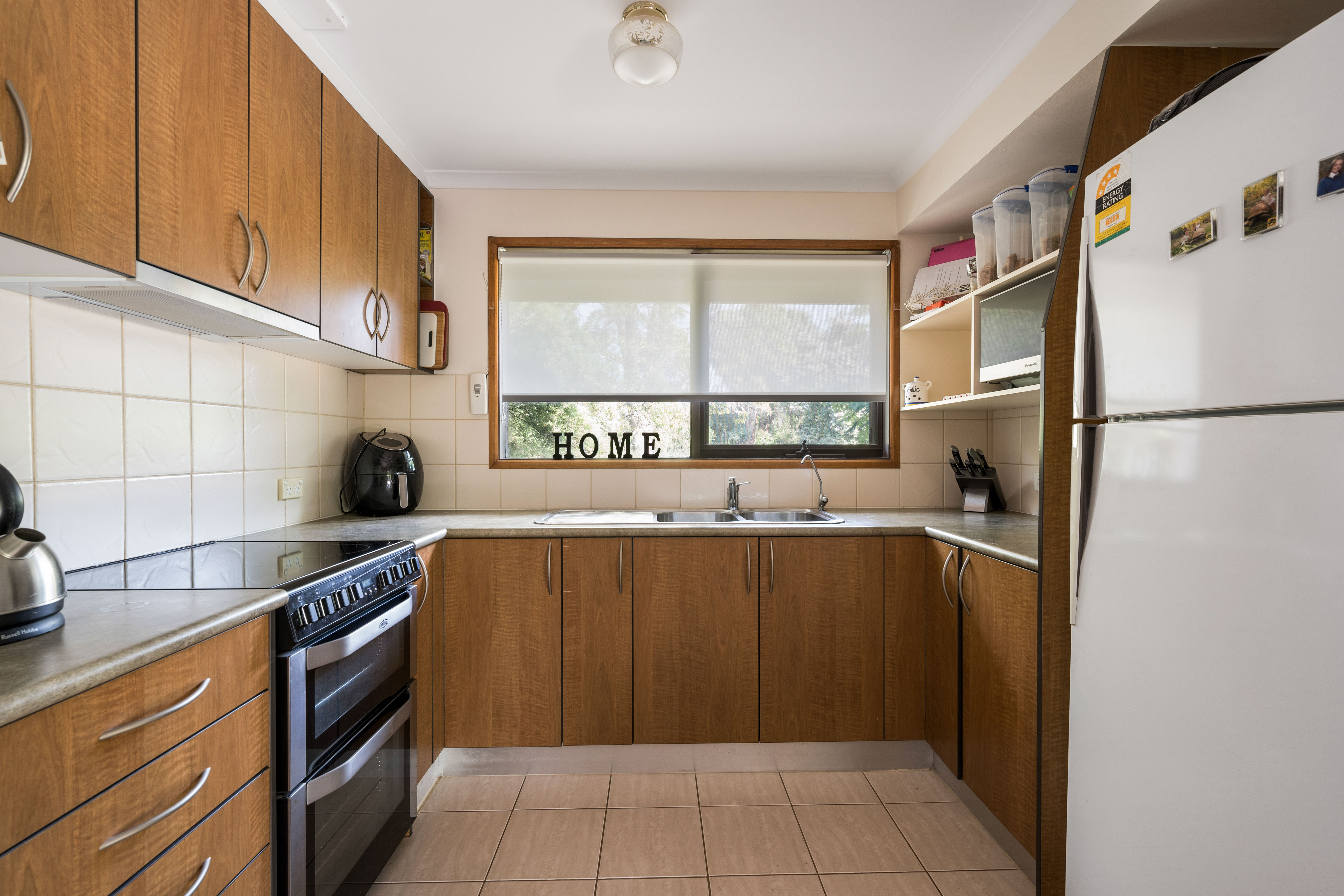 As you step through the front door, you are greeted by an open and seamless integration of the kitchen, living, and dining areas which have recent new vinyl flooring. The updated U-shaped kitchen, with its practical design offers electric cooking with plenty of storage and bench space. The kitchen effortlessly connects with the living and dining spaces. The outdoor covered alfresco offers stairs and a ramp for all access from here, extending the living space to the beautiful backyard.