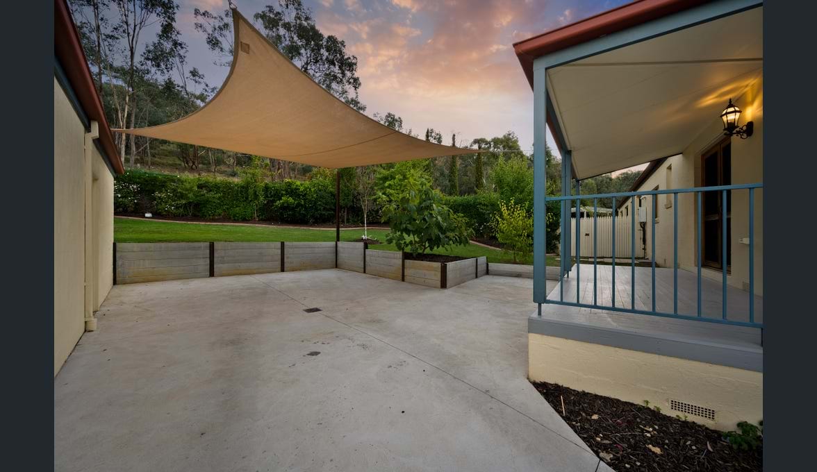 The finished yard comes with a self sufficient fish pond, a solid cubby house for the kids, raised garden beds used for the perfect veggie patch and 5 variety of fruit trees including a generous cherry tree. The gardens are edged and thoughtfully planted with greenery to keep cool. Privacy hedges lead to your own access to the outside reserve which borders two sides of this block.