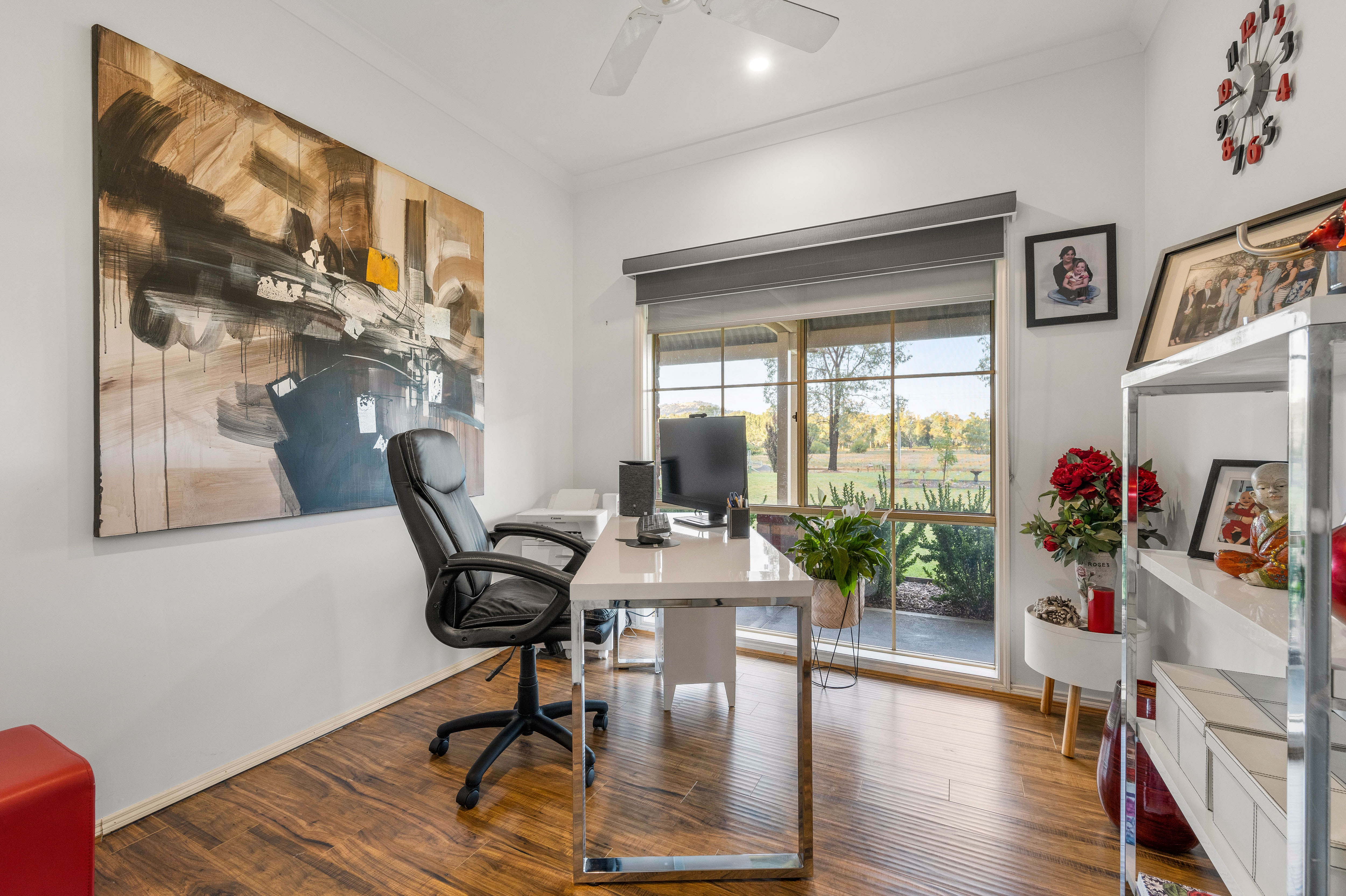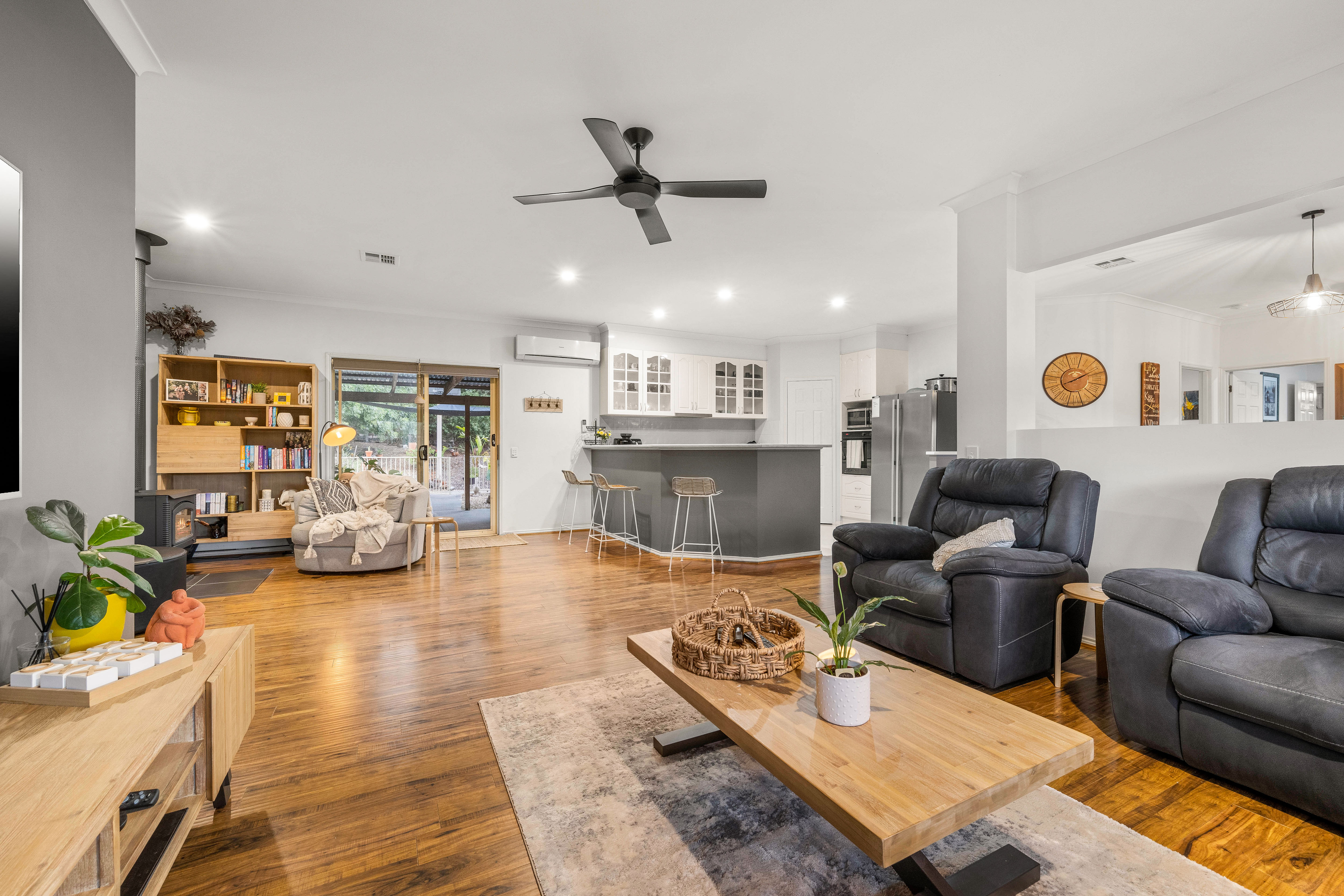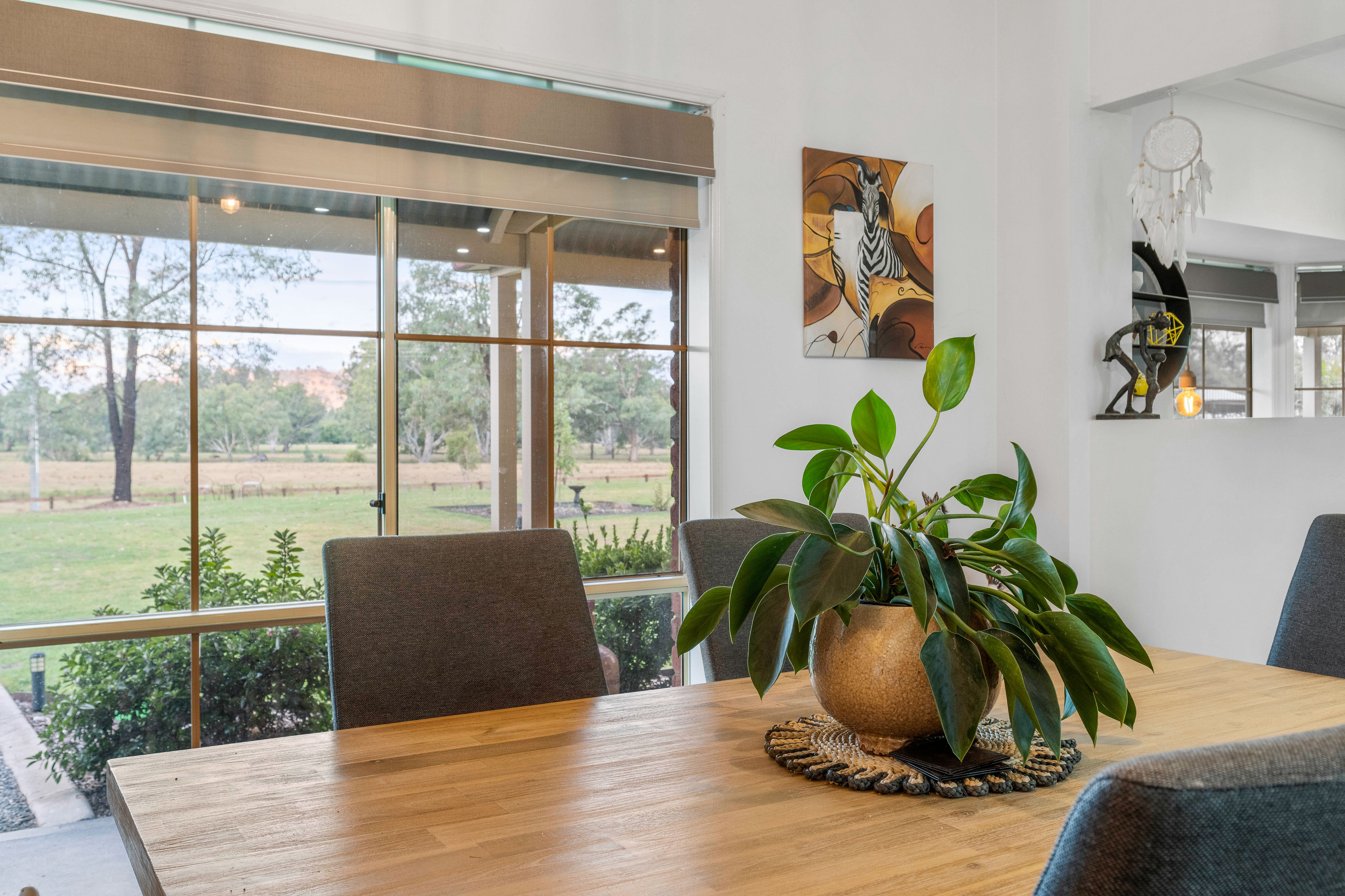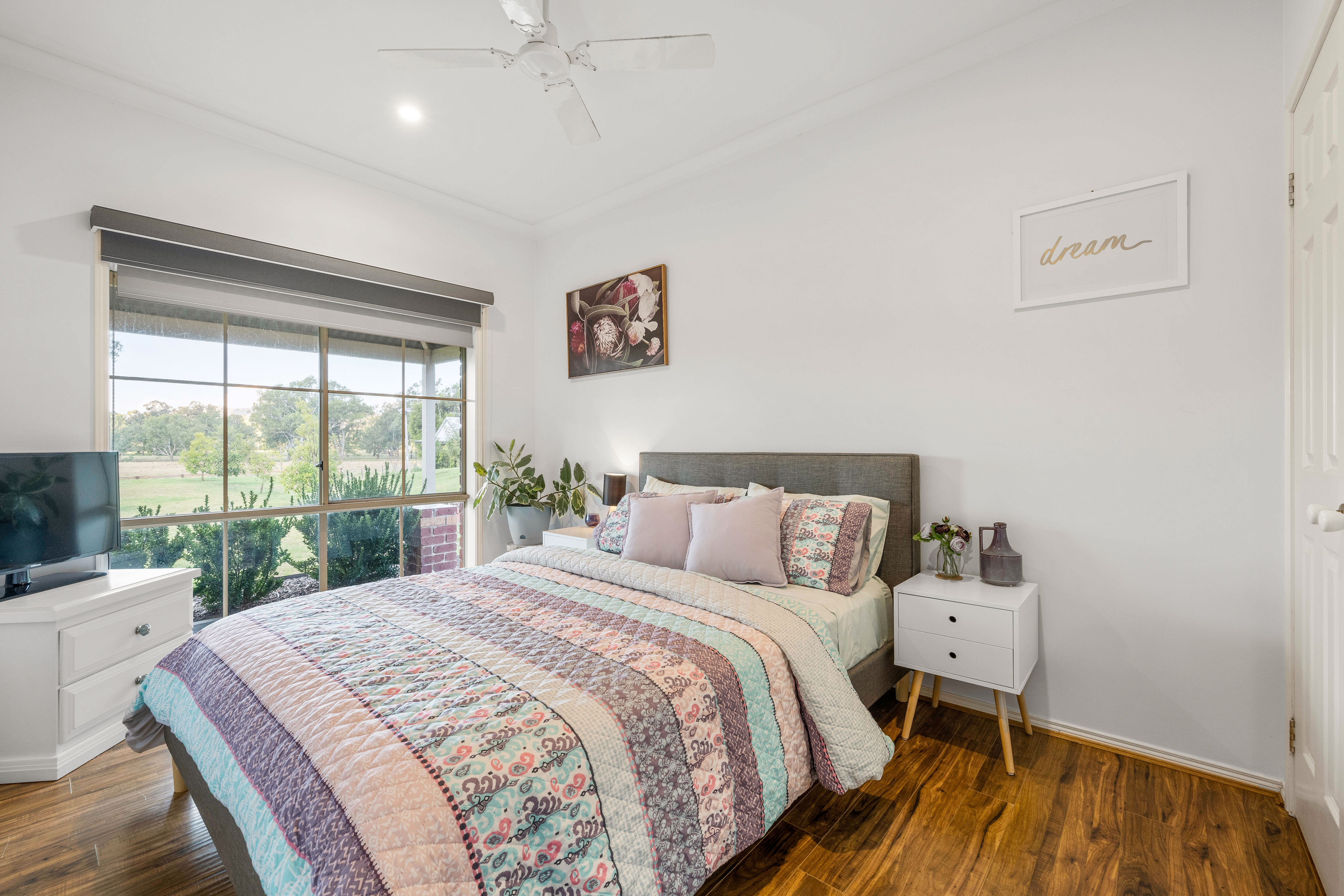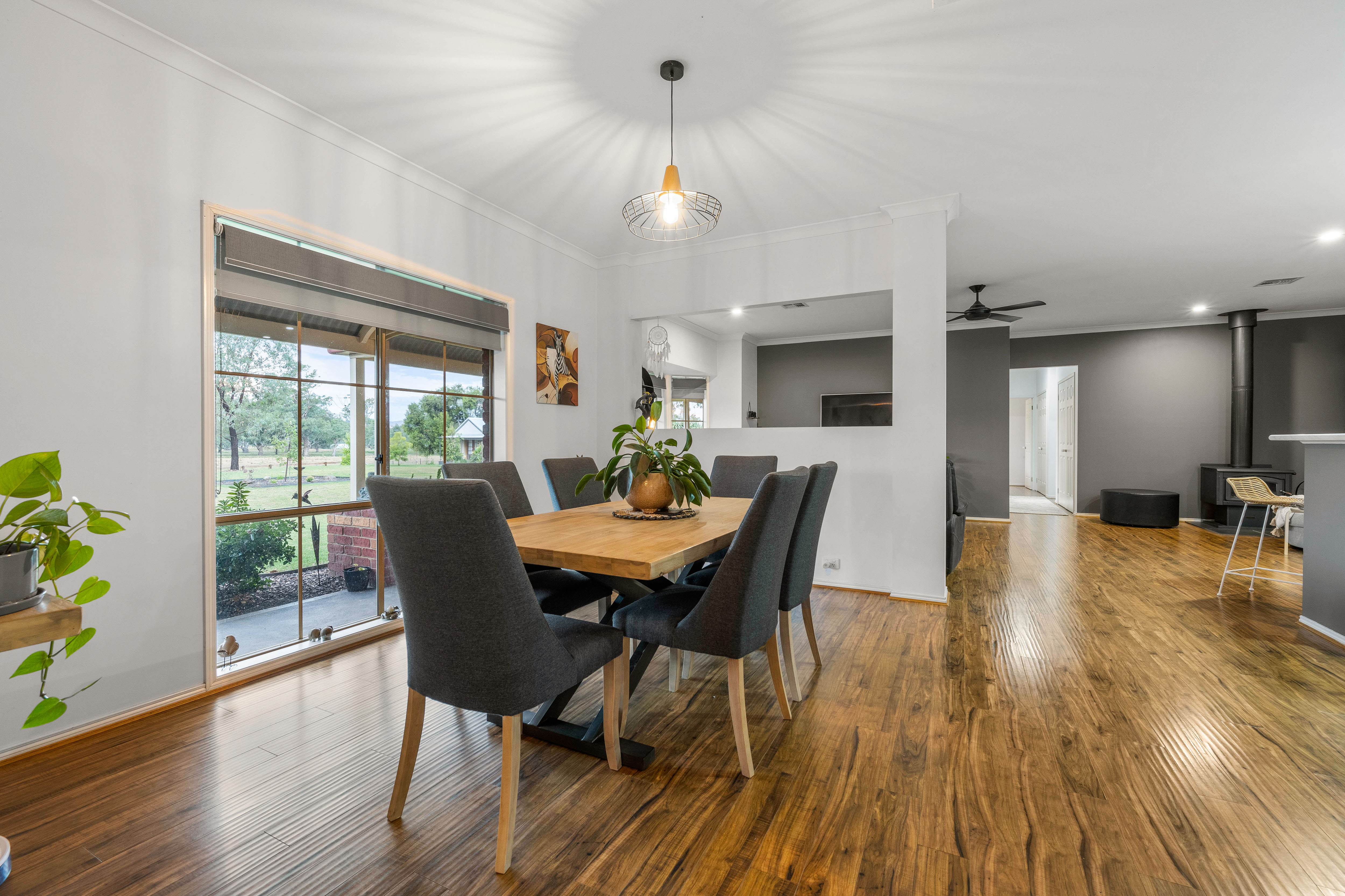 Open plan living, dining by the fire and a fantastic kitchen is found in the heart of the home with expansive views overlooking the alfresco or the peaceful paddocks. The well-appointed kitchen is generous in size, featuring ample bench and storage, dishwasher, stainless steel appliances and walk-in pantry. The beautiful natural light fills this area. Glass sliding doors lead to the large covered alfresco area for year-round entertaining. The alfresco area runs the length of the rear of the home and with the inclusion of a fishpond, it is a peaceful retreat anytime of the day.