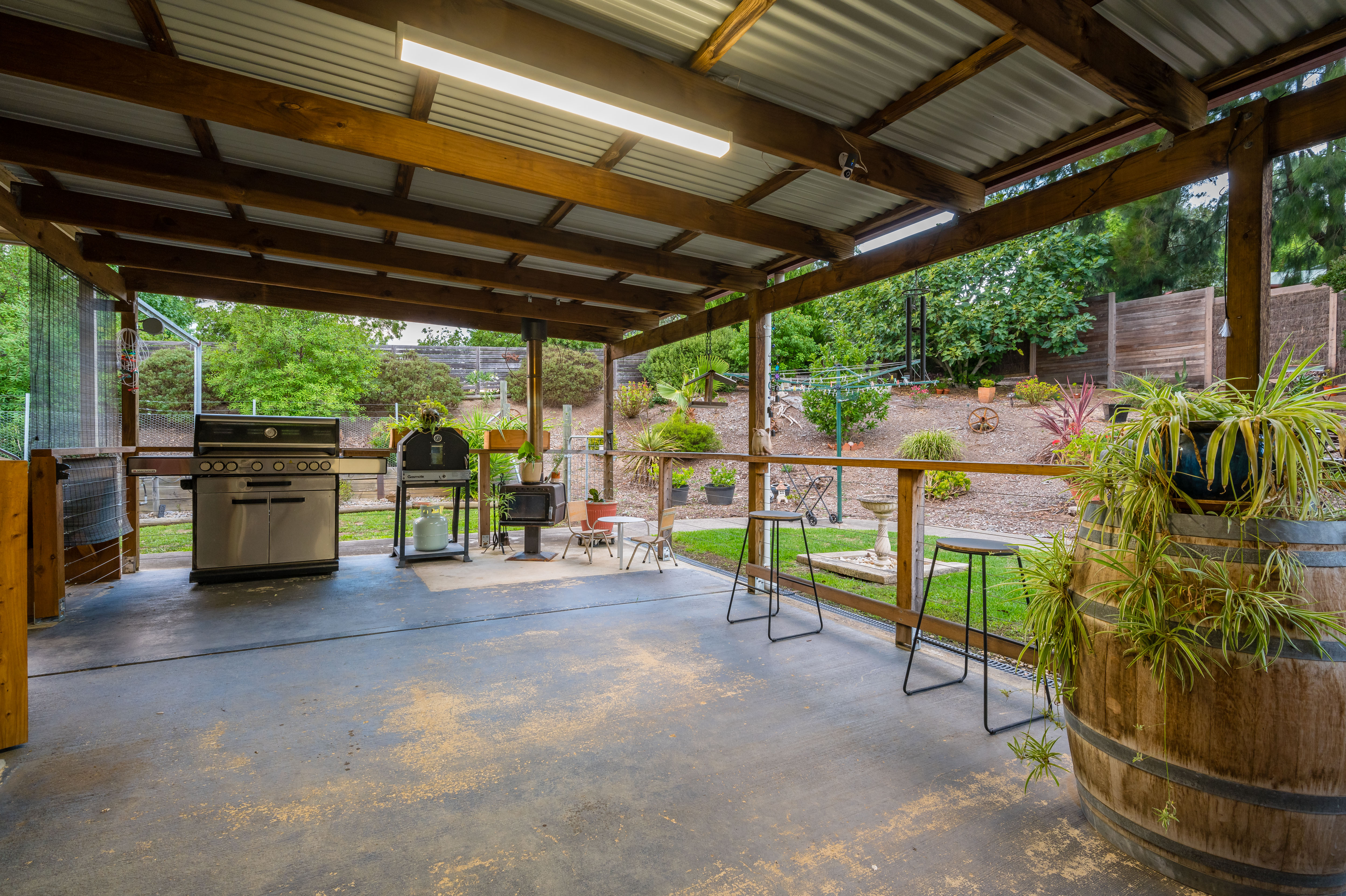 There’s a 6m x 3m shed, woodshed and cosy home for the chickens. The carport is accessed from a wide side driveway. With front gates, another purpose-built enclosed carport being storage for a caravan, boat or trailer. There is plenty of room to build that dream shed, if you like.