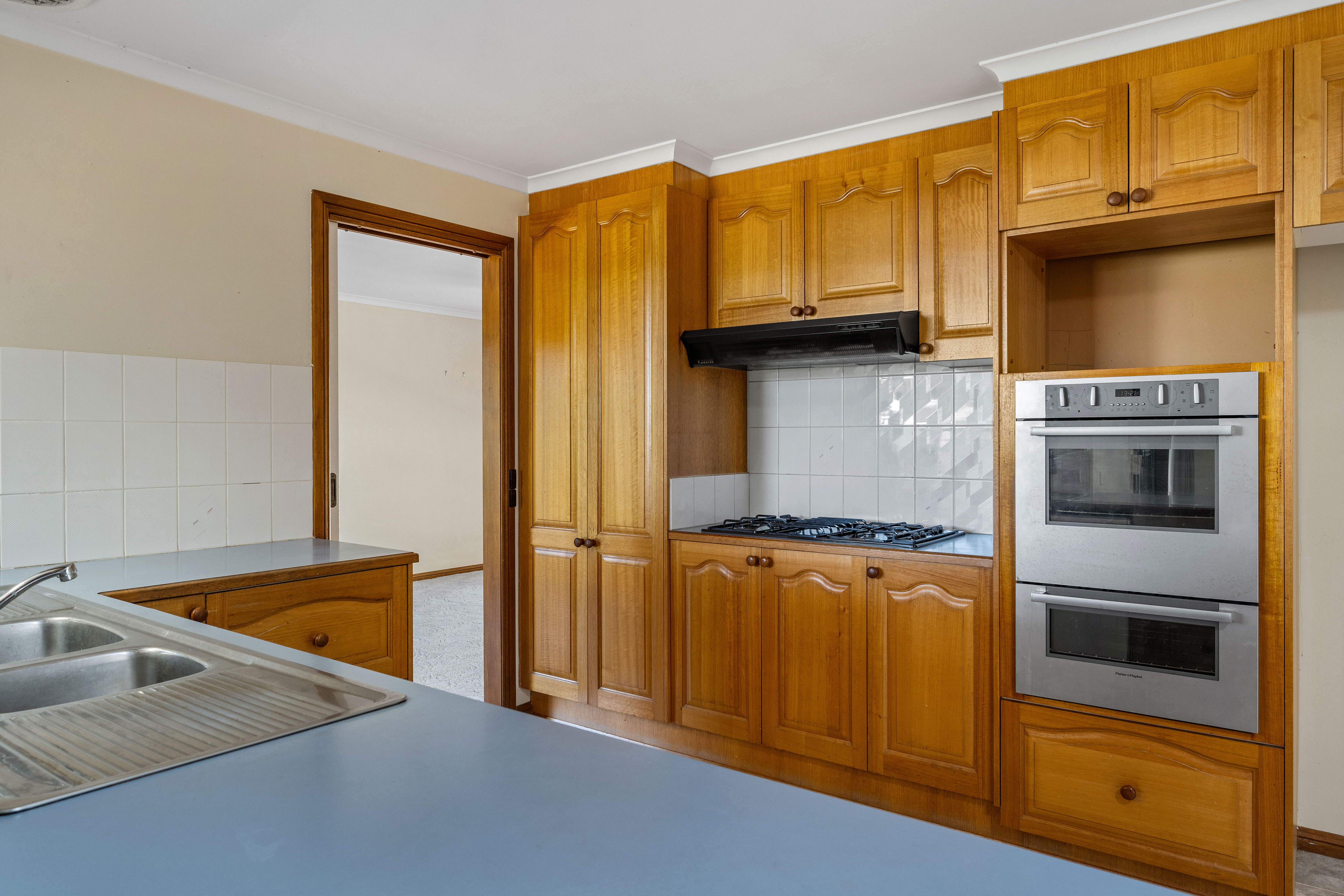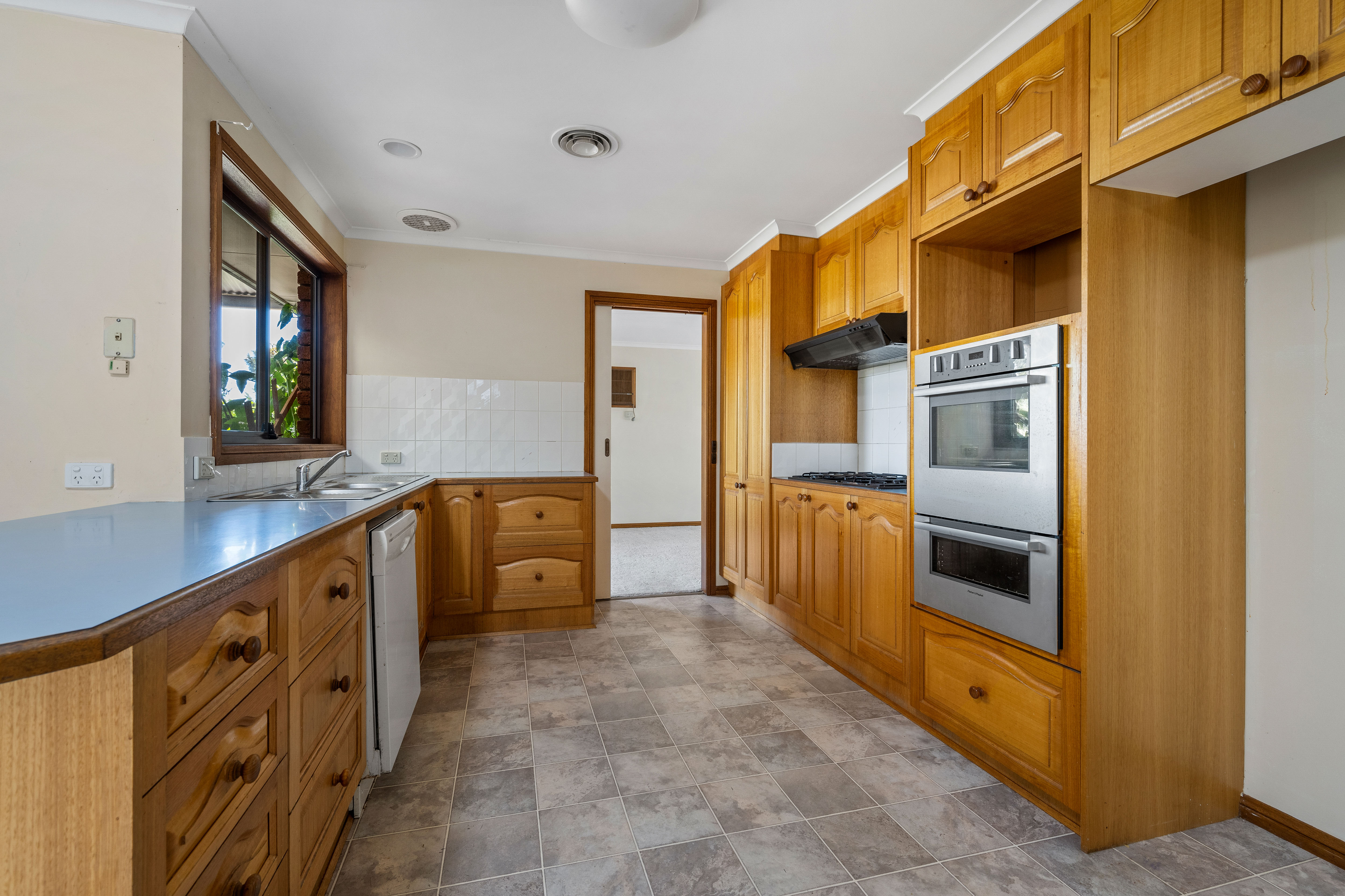 The walk-through kitchen boasts a double wall oven, views and open-plan family and meals space. This meals space opens directly onto the outdoor area and backyard with peaceful surrounds made of tidy garden and lawn as well as mature trees.