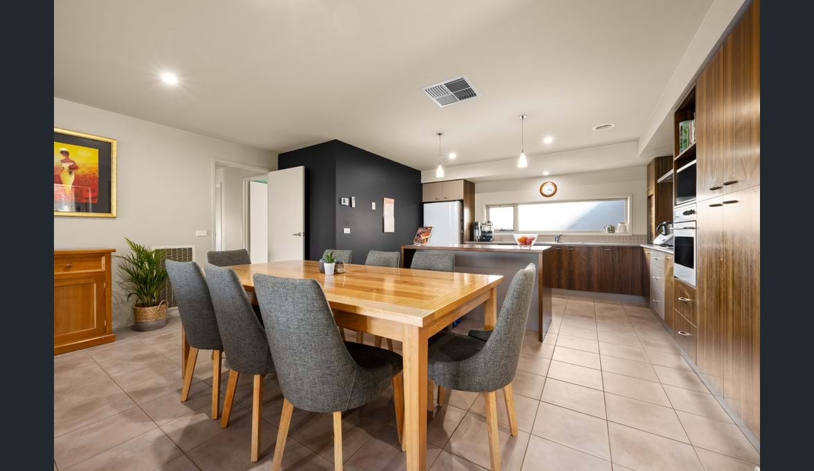 Features include a large open plan dining and kitchen with wall oven, gas cook-top, dishwasher and island bench. Timeless timber look, modern windows, tile flooring and customised cabinetry set the style throughout the whole home.
