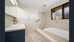 The 5th bedroom with BIR and door through to a balcony. The upstairs bathroom has a shower, spa bath and solid cabinetry.